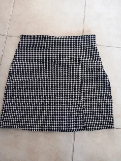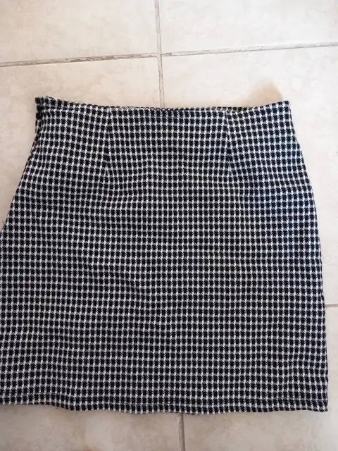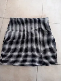 Falda b/n. Bella falda mini, tela con spandex. Abertura discreta de lado. Cierre lateral.