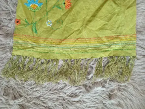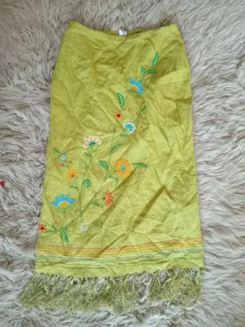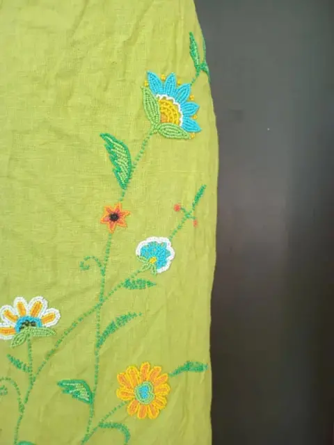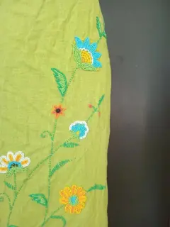 Falda bordada. Bonita falda bordada de flores en color verde pasto, para un look casual