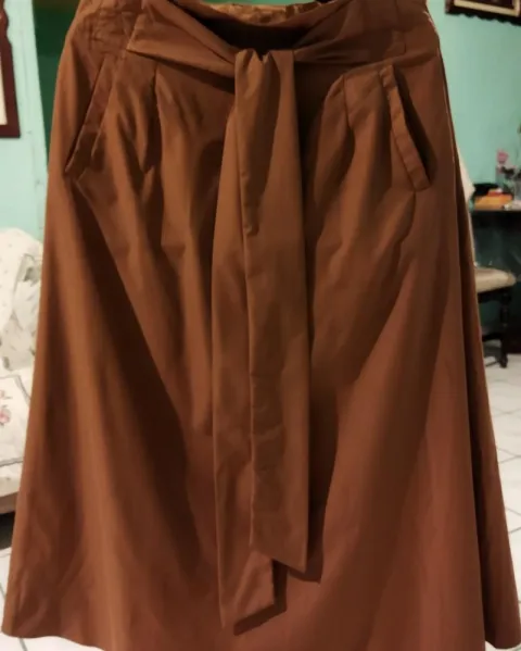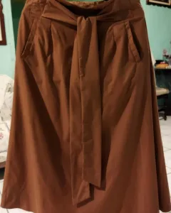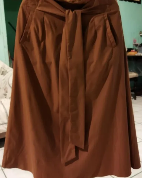 Falda café larga. Falda con cintas al frente, con cierre en la parte lateral de la falda, cuenta con bolsas, está súper comoda