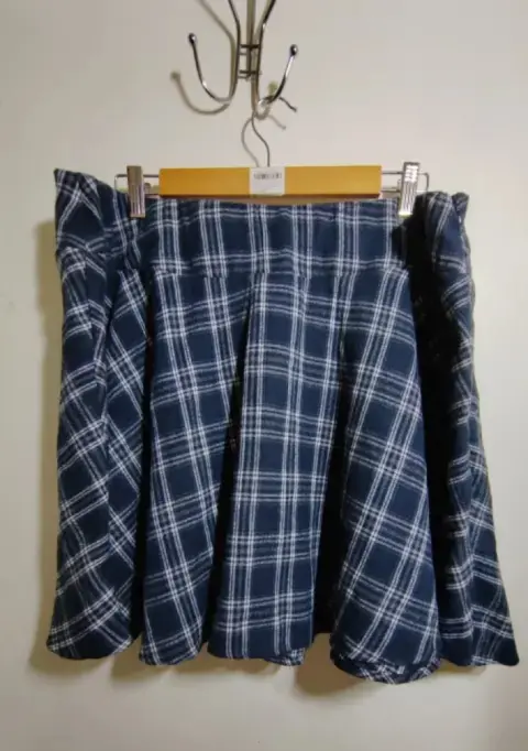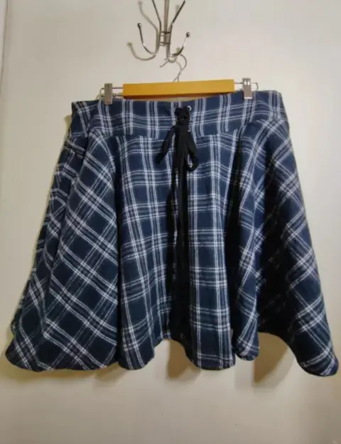 Falda casual. Falda casual a cuadros para estrenar corte con detalle de cintas al frente