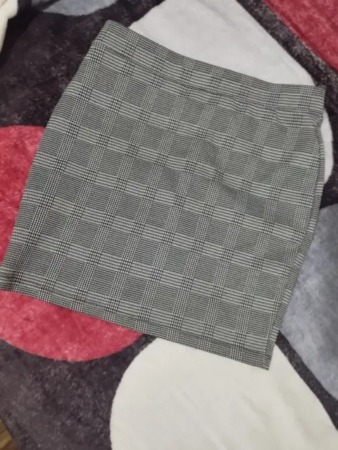 Hermosa falda corta a cuadros,con abertura trasera. Talla S. Solo se uso una vez, es ceñida al cuerpo.