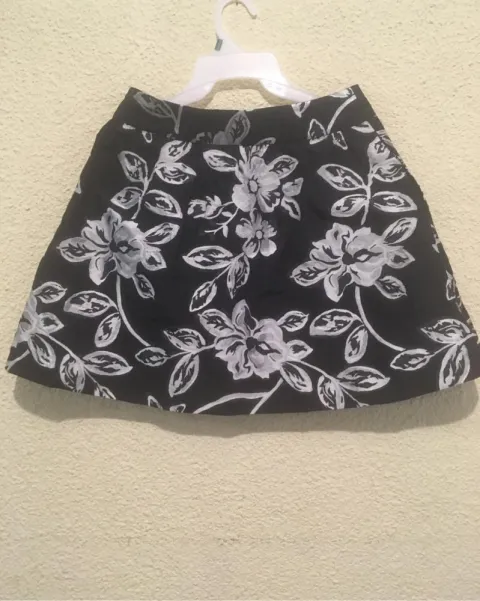 Falda circular banana Repúblic talla s. Hermosa falda nueva circular banana republic talla Ch negra con flores sutilmente plateadas
