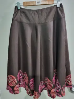 Falda circular cafe talla 4. Hermosa caída, se entalla en la cadera, trae cierre oculto, prenda de excelente calidad, dale una segunda oportunidad.Todas las prendas se envían limpias y listas para usar, se mandan en caja reciclada pero protegida con papel para que no se maltrate.