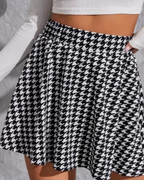 Falda circular estampado pata de gallo. Falda circular estampado pata de gallo talla CH, marca SHEIN único detalle no trae su etiqueta, así me llegó. Foto 1 de referencia no es la misma es solo una idea de como se puede usar