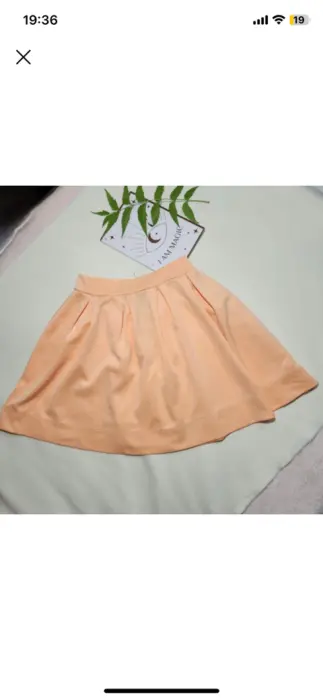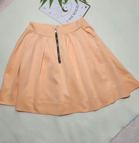Falda color durazno. Preciosa falta tipo plato, hang ten talla S queda bien a M el color es precioso ❤️ Tiene cierra plateado en la parte trasera. A la cinturaLargo: 42 cmCintura: 68 - 75 cm