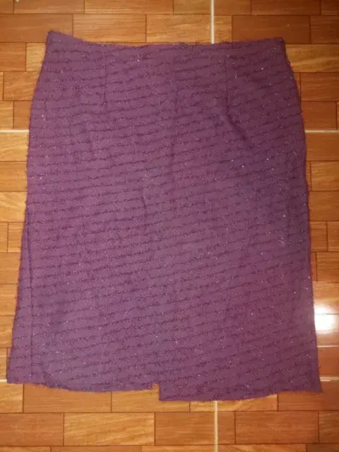 Falda color uva. Falda en corte recta, la tela es elástica y trae textura como pelitos qué hacen qué también brille, es TALLA 36 de largo llega aprox a la rodilla
