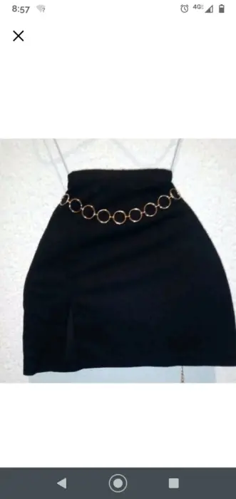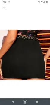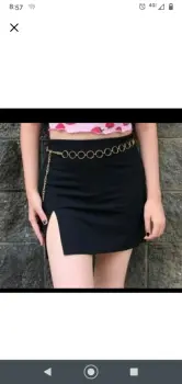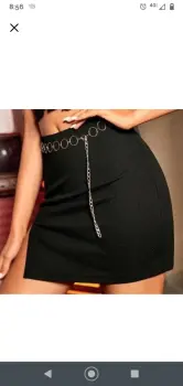 Falda con cinturón de cadena de SheIn.Largo: 47 cmContorno cintura: 72 cmContorno caderas: 91 cmLa tela es delgada tipo de vestir pero de buena calidad y estira bastante, la abertura en la pierna es muy elegante y su cadenita luce muy bien. La usé una vez para una cita ♥️ y de ahí ya me aburrió 😅 las primeras fotos son de SheIn y las otras soy yo