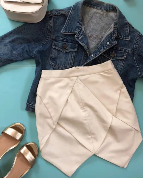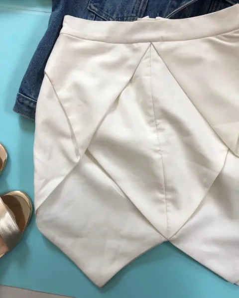 Falda color blanco hueso con puntas picudas en la parte de abajo, cierre completo. Ideal para usarlo este verano