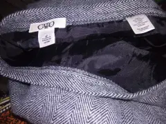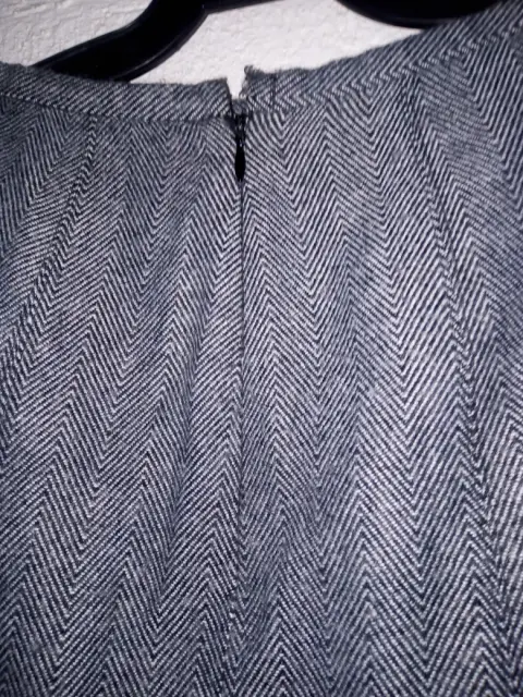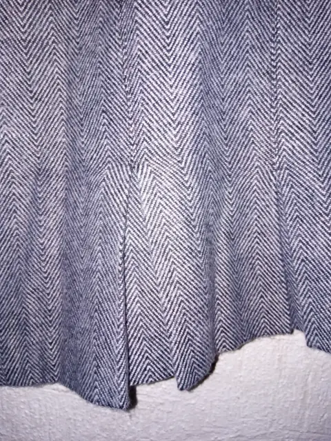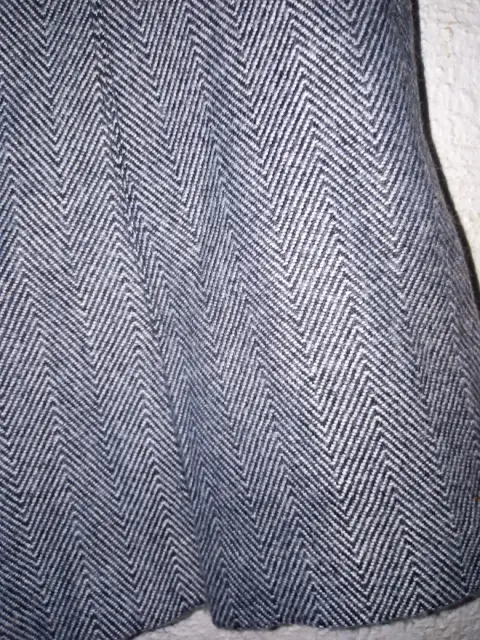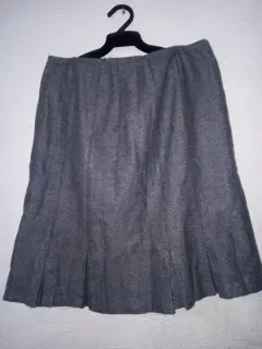 Falda con 8 pinzas color gris y negro en Zig zag, con cierre y broche, forro. De cintura 82 cm y de largo 66 cm.