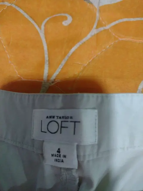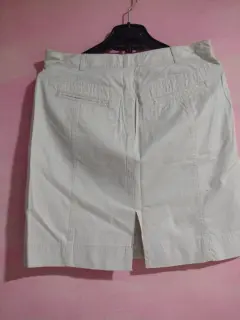 Falda corta color muy claro aperlado marca loft,dice talla 4 da a una S/M tiene bolsas hermosas enfrente con cierre y bolsas atrás.