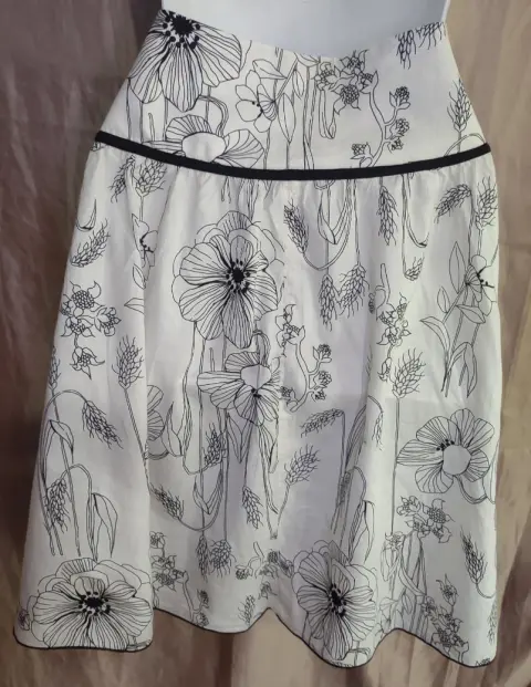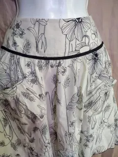 Falda corta, beige con negro. Coqueta falda corta. Nueva, talla L.Cintura ancha, bolsas de parche al frente en los dos lados, plisada al frente y atrás, cierre en un costado.Tela delgada.Cintura: 40 cmLargo: 58 cm