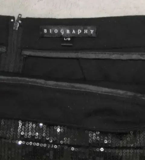 Falda Corta con Lentejuelas Biography Talla L. Falda Corta Biography con lentejuelas solo frente Talla L con cierre