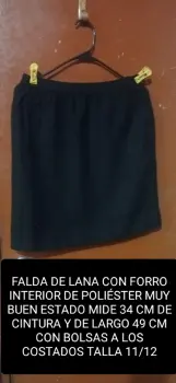 FALDA CORTA DE LANA TALLA 4. FALDA CORTA DE LANA CON FORRO INTERIOR CON BOLSAS A LOS COSTADOS TALLA 4 DICE 11/12 PERO ES 4 MIDE 34 CM DE CINTURA Y 49 CM DE LARGO