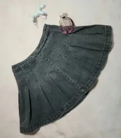 Falda gris corta con pliegues de mezclilla marca Forever21 Talla S con cierre de lado y talle alto a la cintura. Está hermosa, la recomiendo para alguien petite.Largo: 38 cmCintura: 66 - 72 cm