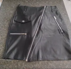Falda corta de Tactopiel color negra. Padrísima falda tipo piel con cierres y bolsas muy (Rockstar) talla s marca ever and ever
