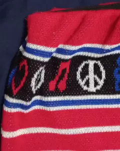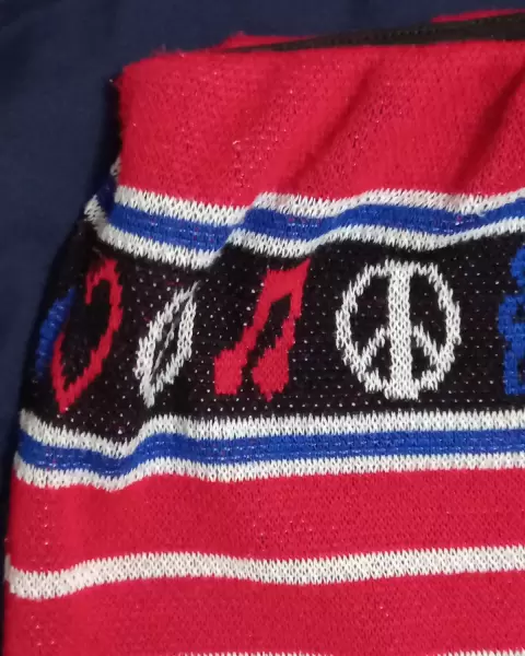 Linda falda de rayas rojo,blanco y azul.Letras L O V EEs corta , trae resorte en la cintura.