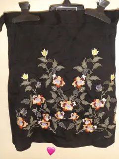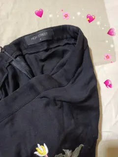 Falda corta negra. Falda bordada de flores tiene tela ajustable muy cómoda los estampados son bien elaborados y la tela parece terciopelo