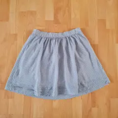 Falda corte A con vuelo, tiene fondo, dice en etiqueta XS pero también quedaría a una S, sin detalles.Cintura con resorte: 35 cm a 44 cmLargo: 50 cm