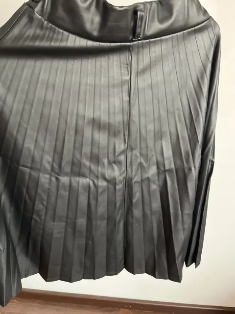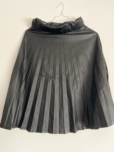 Falda negra de dama de vinipiel tableada, larga a la pantorrilla, unitalla y se estira