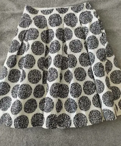 Falda damaLargo 55 cmCintura 30 cmBolsas al costadoForroAncho falda 5O cmTalla XS chicaPoliesterFalda con tablones al frenteMuy bonita y de buena calidad