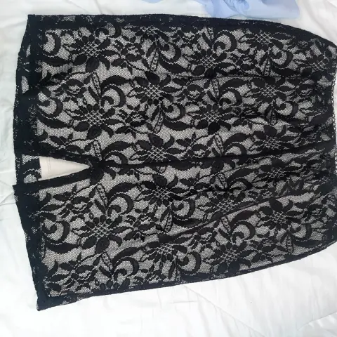 Falda de encaje. Falda recta de encaje negro con forro blanco, llega abajo de la rodilla, talla 36, con resorte en la cintura