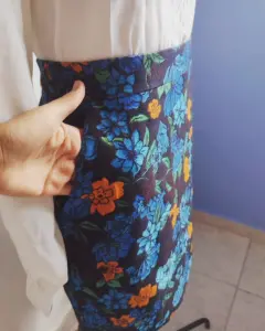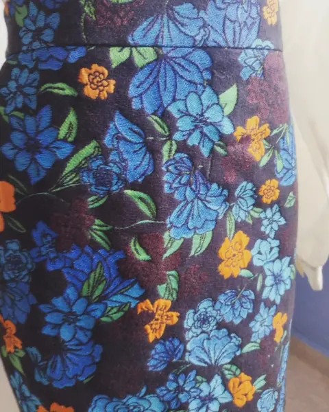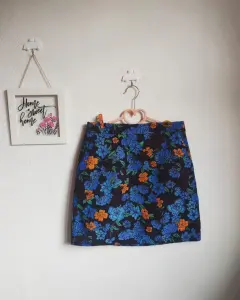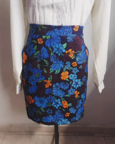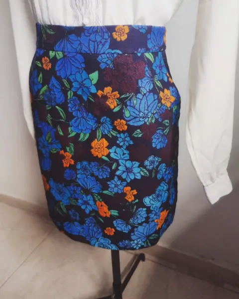 Falda de flores. Hermosa falda de flores tonos azules y naranja