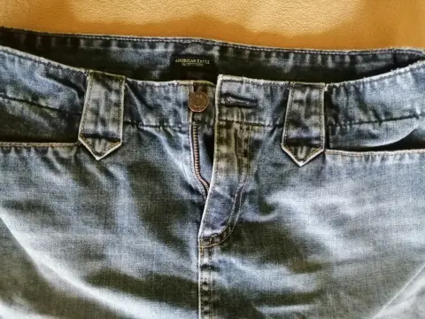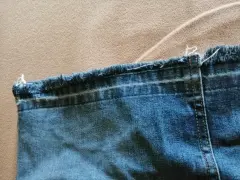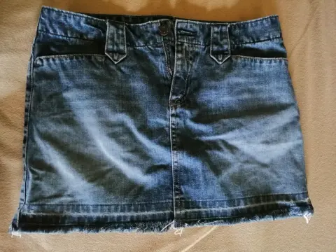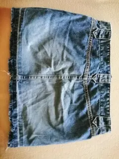 Linda falda corta de mezclilla detalles solo de uso ♥️estira un poco quedara una S o M viene grandesita, Adjunto Medidas : 38 cm de ancho, largo 35 cm.