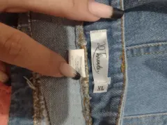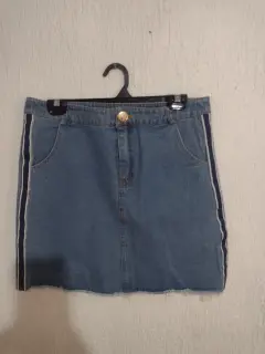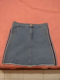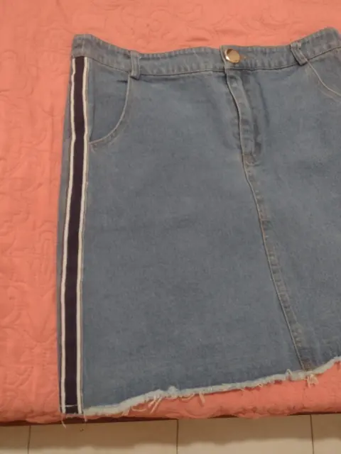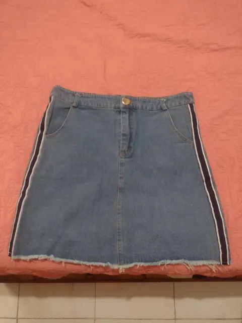 Falda de mezclilla con franjas a los lados talla XL completamente nueva color mezclilla clara y las franjas delgadas blancas y la gruesa azul marino.