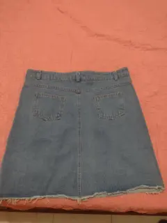 Falda de mezclilla retro. Falda de mezclilla con franjas a los lados talla XL completamente nueva color mezclilla clara y las franjas delgadas blancas y la gruesa azul marino.