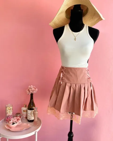 Falda de tablas rosa. Preciosa falda de tablas talla CH, no estira. Mide 70 cm de cintura, cadera suelta y 42 cm largo.
