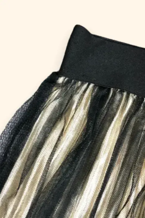 Pinky Lovers, esta falda plisada tiene tul en la parte exterior con el fondo en color perla satinado con elástico en la parte superior, está bellísima.👉Obtén 10% de descuento con mi código: Pinky