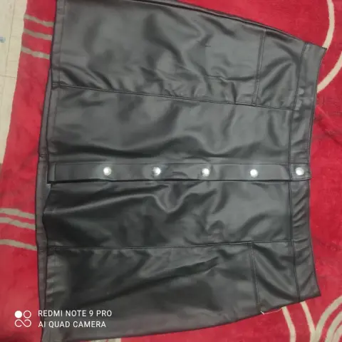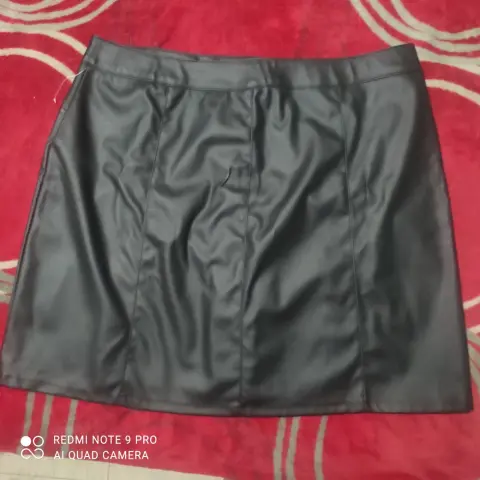 Falda nueva sin etiqueta de vinil color negra talla L , arriba de la rodilla