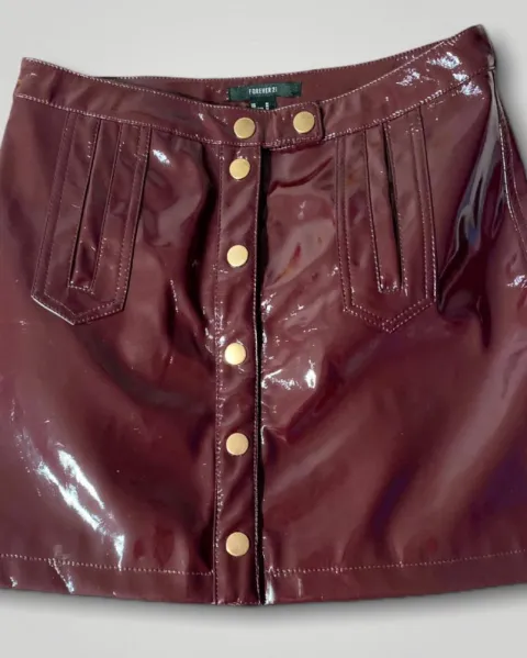 Falda de vinipiel, con botones dorados, tiene unas bolsitas en los laterales, perfecta en cualquier temporada