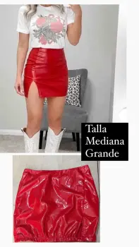 Falda de vinipiel. Falda de súper moda NuevaLista para estrenar Tiene strech Y tiene su forro en la parte de abajo Es talla grande puede quedar a mediano