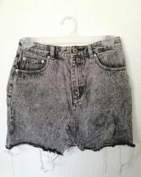 Falda de mezclilla, desilachada, talla 28 mx, queda ajustada. Super linda