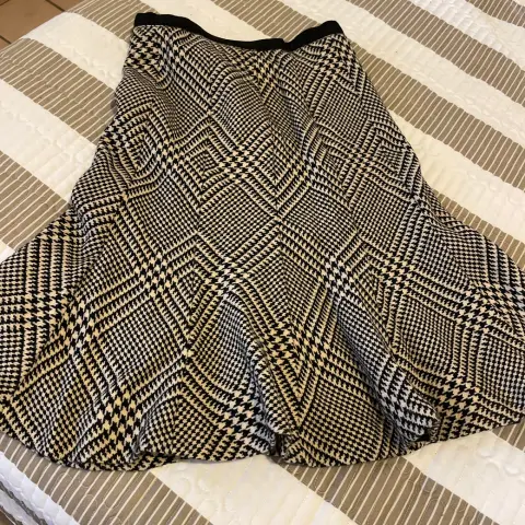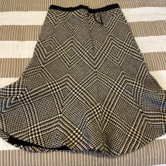 Falda en lana T XXS. Elegante falda en lana, cuenta con forro, excelente caída en su tela. Tiene costuras que termina en cuchillas más abiertas lo que da un toque muy lindo.Cierre lateral.Cintura 68 cmLargo 62 cm.