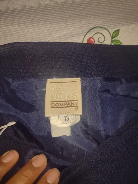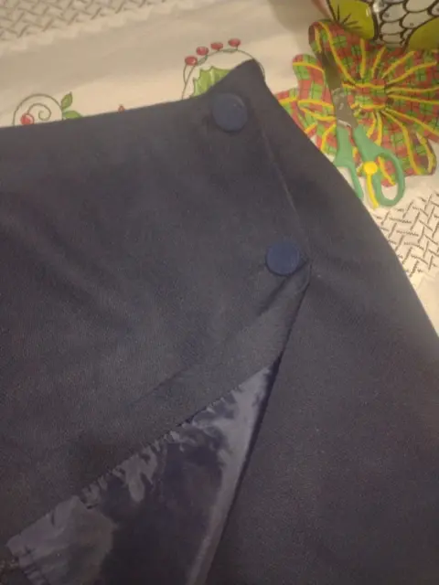 La falda es de botones es decir puede ajustarse a la cintura botones forrados originales en perfecto estado y cuenta con su boton interior, el total de la falda de inicio a fin es de 103 cm largo 42 cm