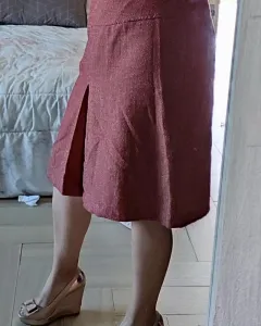 Falda Estilo vintage. Nueva no tiene forro pero la tela es gruesa y calientita. En las fotos se ve de cerca el colorDice talla 34 pero queda a M Medidas Ancho lado a lado cintura 41cmCadera lado a lado 51cmLargo 55cm