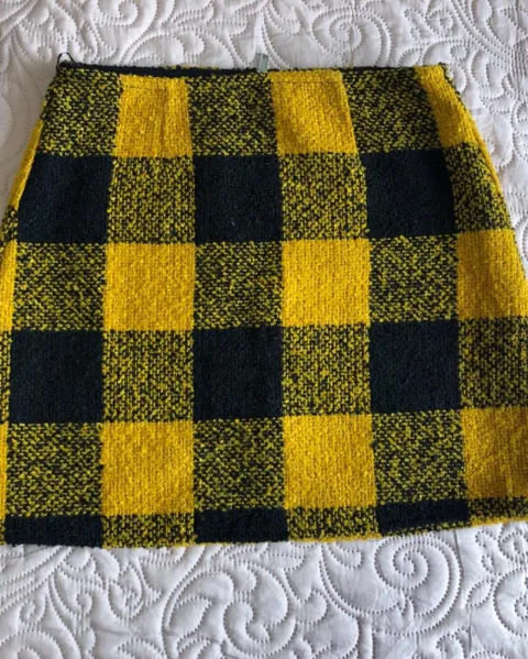 Hermosa falda F21 a cuadros. Color mostaza con negro. Talla S