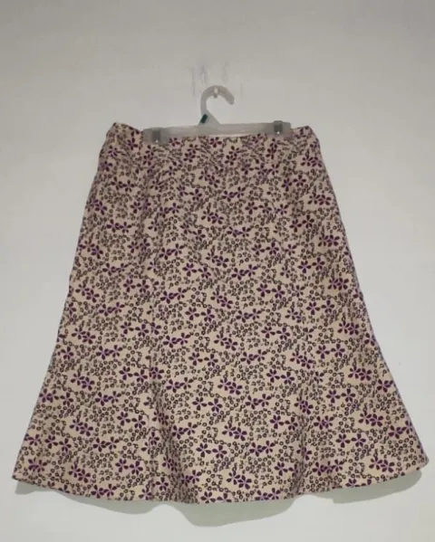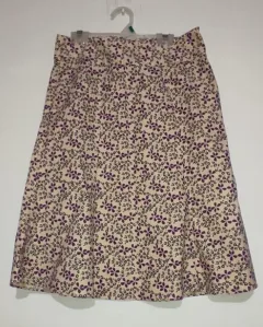 Falda flores Gap. Talla 2 queda a talla S, es de tela gruesa pero no calurosa, se ve padrisima de vestir con tacones o informal con tenis o flats. El estampado es de flores moradas