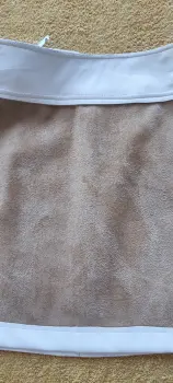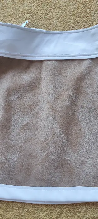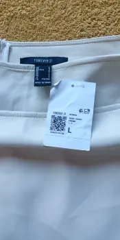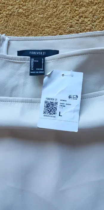 Falda Forever 21, material parecido al cuero, con abertura en cada lado de la cintura, color crema es talla L pero queda en M-L está hermosa.