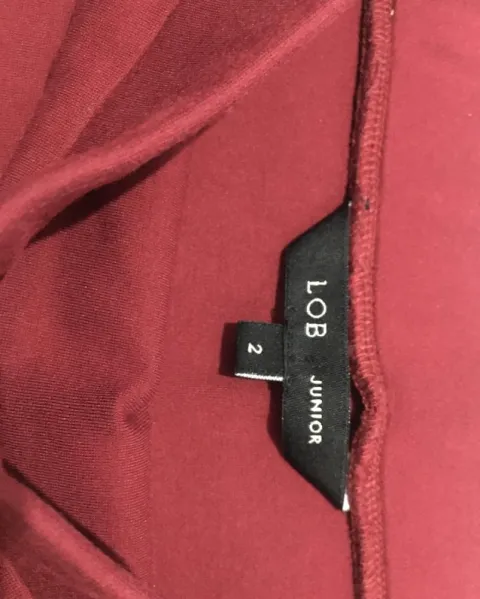 Falda lápiz, color tinto, talla S (2) se amolda completamente al cuerpo, llega a la rodilla y la tela es gruesa stretch