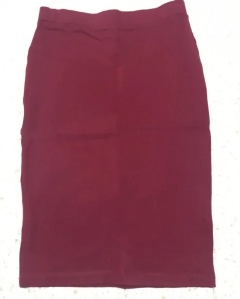 Falda lápiz. Falda lápiz, color tinto, talla S (2) se amolda completamente al cuerpo, llega a la rodilla y la tela es gruesa stretch