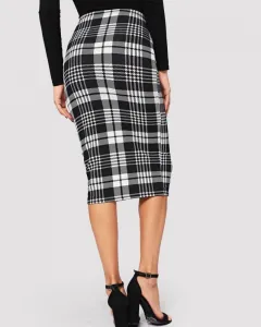 Bellísima falda lápiz a cuadros blanco con negro, increíble caída en talla M de Shein.