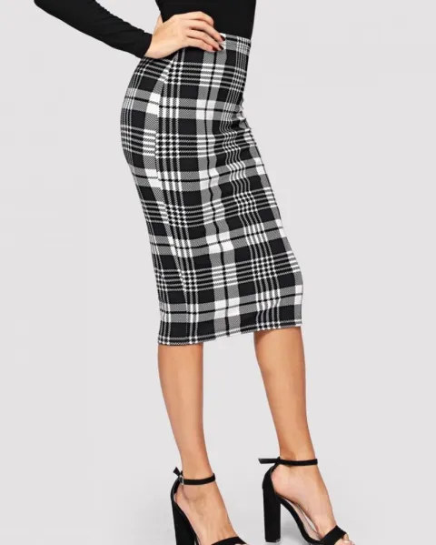 Falda lápiz a cuadros blanca y negro. Bellísima falda lápiz a cuadros blanco con negro, increíble caída en talla M de Shein.