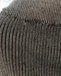 Falda de Licra en corte lápiz llega abajo de la rodilla y tiene elástico en la parte de la cintura es color entre gris y dorado :)