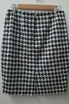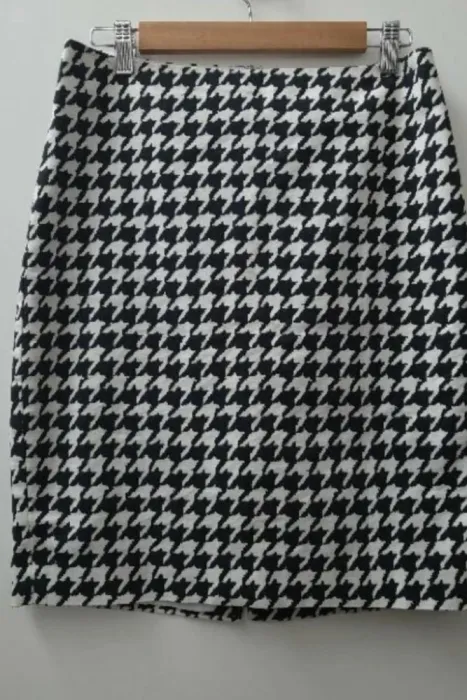 Falda Lápiz Estampado Houndstooth. Falda Lápiz marca The LimitedEl estampado es HoundstoothCierre en la parte de atrásViene forrada por dentroTalla 6. Medidas aproximadas: 39cm de cintura,55cm de largo.