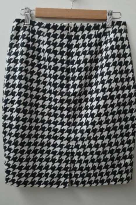 Falda Lápiz marca The LimitedEl estampado es HoundstoothCierre en la parte de atrásViene forrada por dentroTalla 6. Medidas aproximadas: 39cm de cintura,55cm de largo.