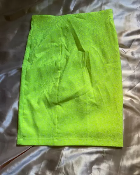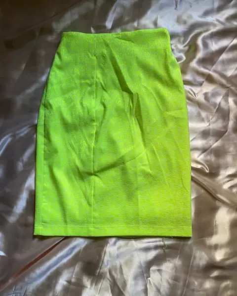 Falda lápiz neón. Preciosa falda color neón. Tiene la tela grabada. Es muy bonita, pero nunca la utilicé. Dice L pero queda más a M. Cierra en la parte de atrás