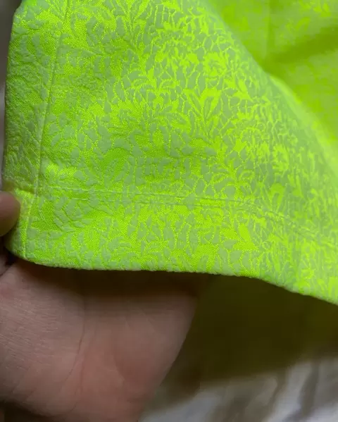 Preciosa falda color neón. Tiene la tela grabada. Es muy bonita, pero nunca la utilicé. Dice L pero queda más a M. Cierra en la parte de atrás